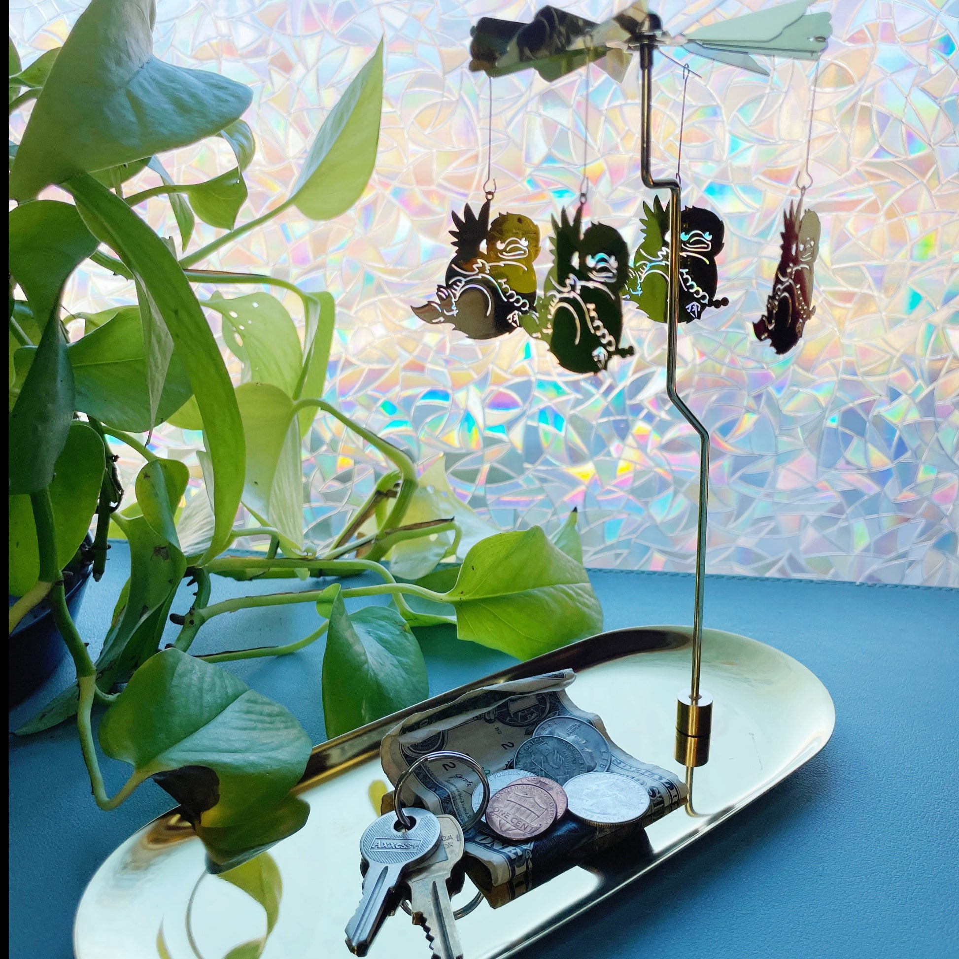 Comes with Gold tray, magnetic arm, fan, 5 hooks and 4 charms.